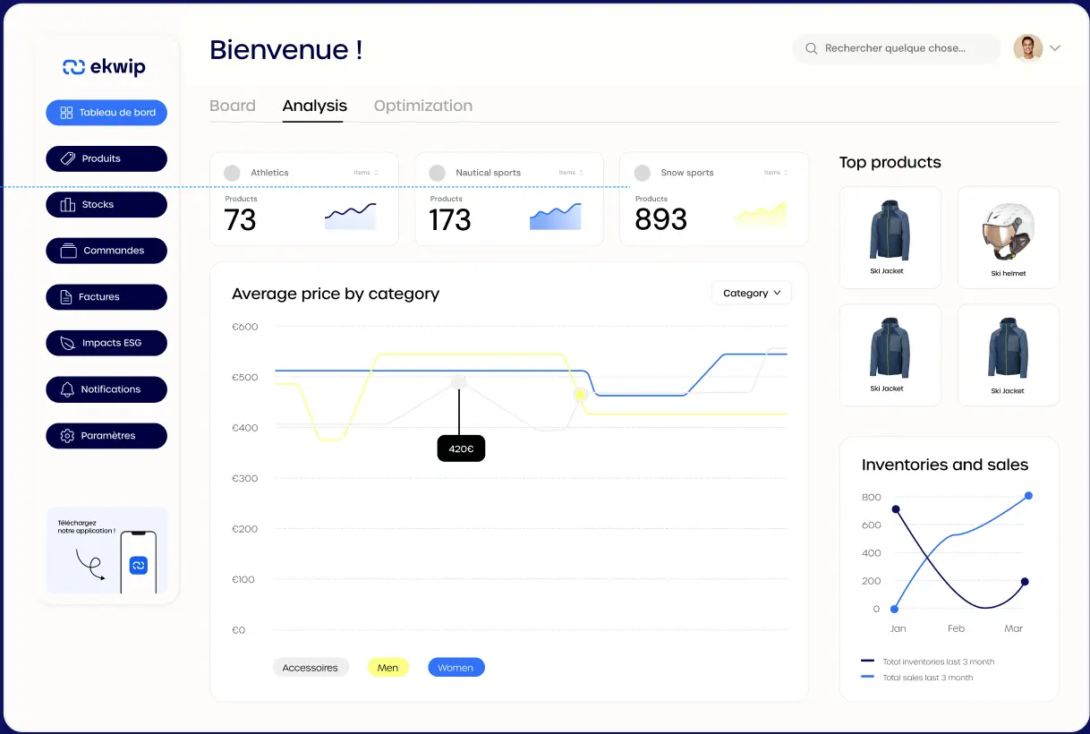 ekwip vous remonte des données claires sur la performance de votre stock, en magasin comme en ligne.